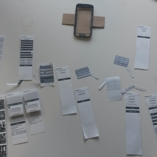 m dit design te testen is het uitgewerkt tot een paperprototype en getest op usabilitie. Aan het einde van deze test is er ook nog een interview afgenomen om de ervaring en mening van de tester te achterhalen.