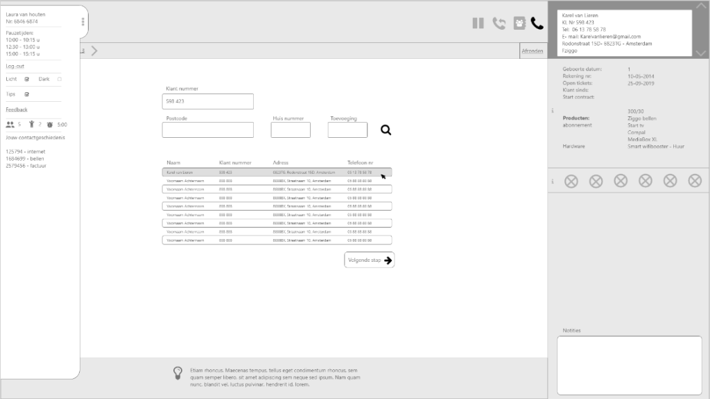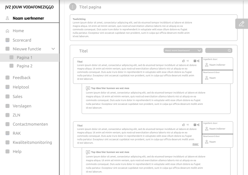 Mijn is gevraagd om een eerste opzet te maken voor een nieuwe pagina bij JVZ (Jouw VodafoneZiggo). Dit is de platform waar medewerkers hun eigen gegevens kunnen inzien.