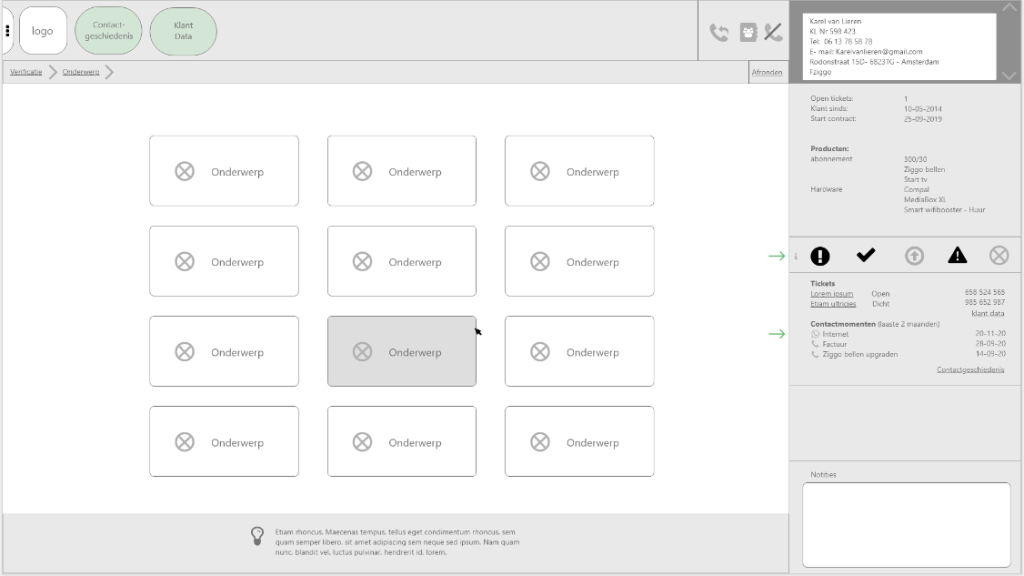 Op de pagina moet het voor een medewerker makkelijker worden verbeterpunten (tips) voor VodeafoneZiggo door te geven. In mijn eerste voorstel heb ik de volgende punten verwerkt: